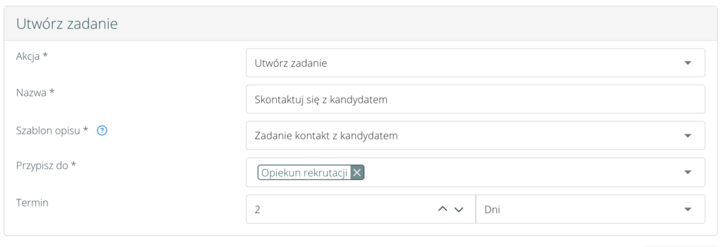 Po wykonaniu akcji wyzwalającej system utworzy zadanie zgodnie ze zdefiniowanymi parametrami:
