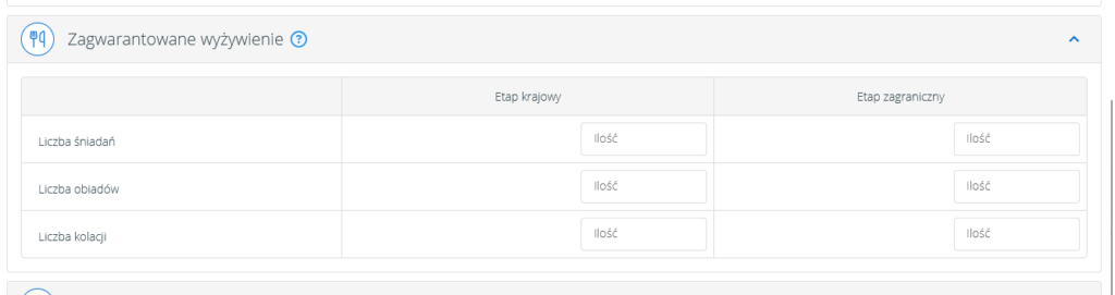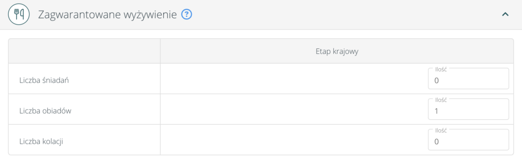 Należy wybrać, jakie posiłki były zagwarantowane i w jakiej ilości. Wprowadzone dane mają wpływ na dietę, która zostanie wypłacona.