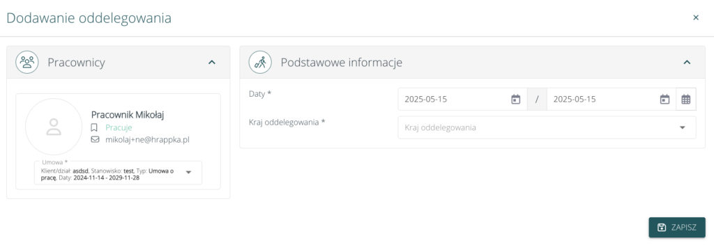 Dodawanie oddelegowań #