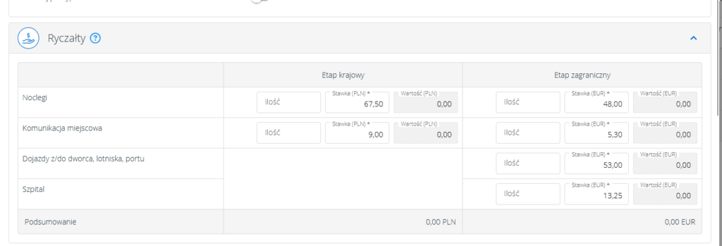W przypadku delegacji zagranicznej, ryczałty zostaną podzielone na dwa etapy – etap krajowy oraz zagraniczny:
