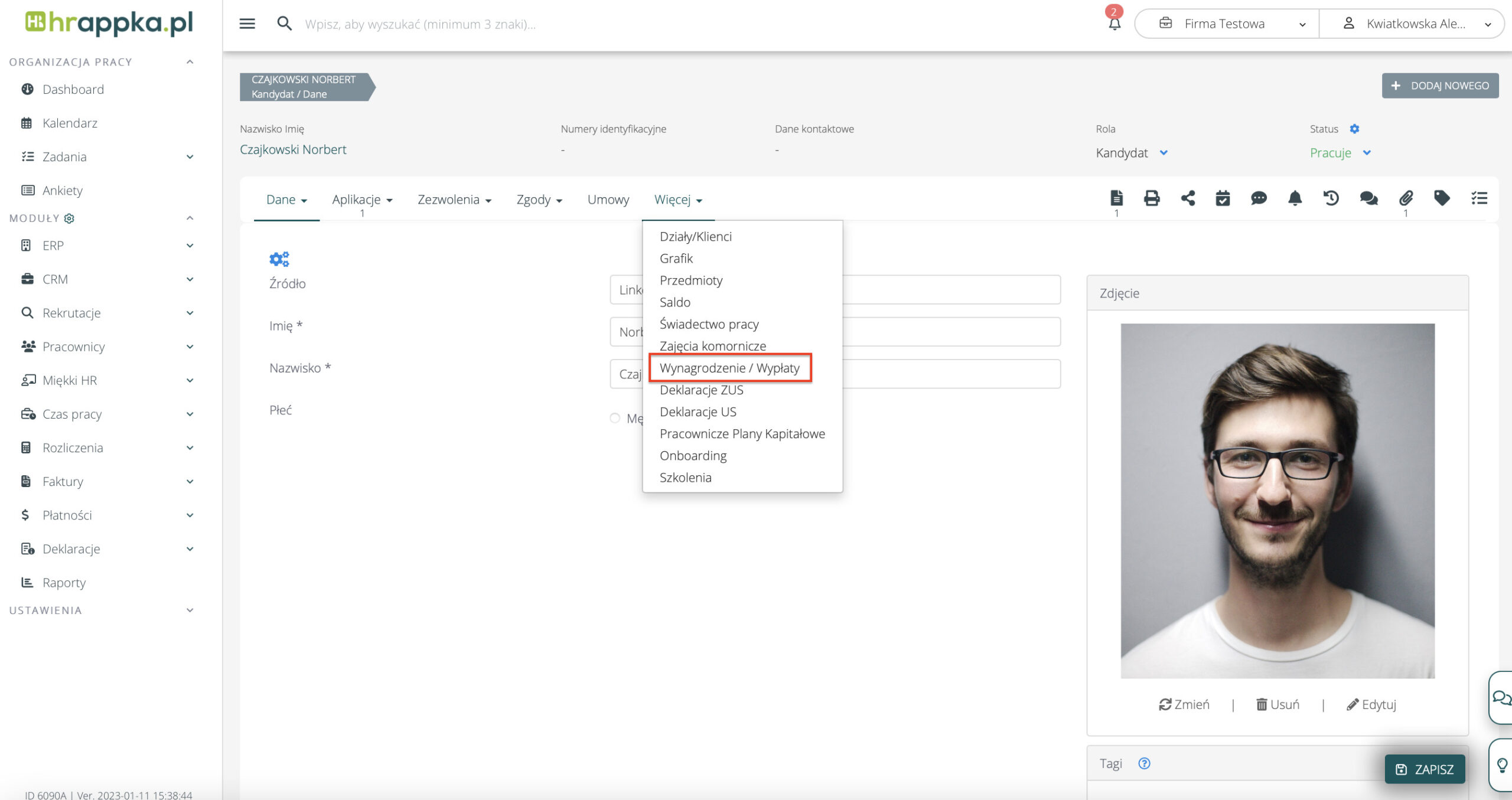 Karta rozliczeń znajduje się na profilu pracownika w zakładce Więcej > Wynagrodzenia. Klikając przycisk „Pobierz” nad tabelą można pobrać kartę wynagrodzeń.
