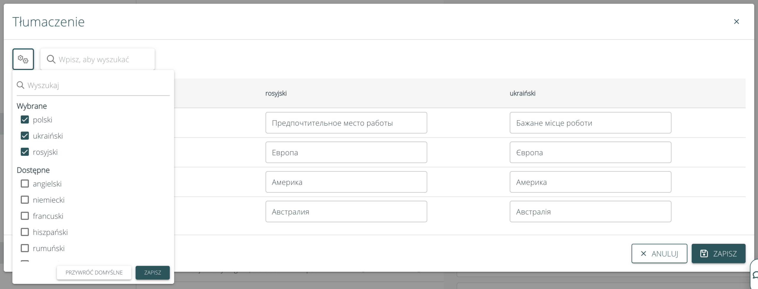 Po kliknięciu pojawi się okno z automatycznie przetłumaczonymi polami. Możemy sprawdzić tłumaczenie, wprowadzić ewentualne zmiany i zapisać.