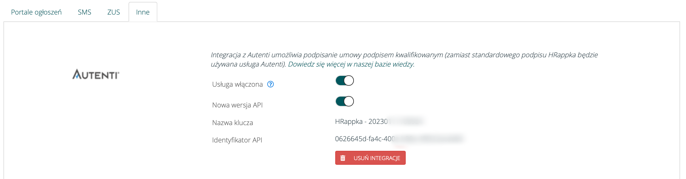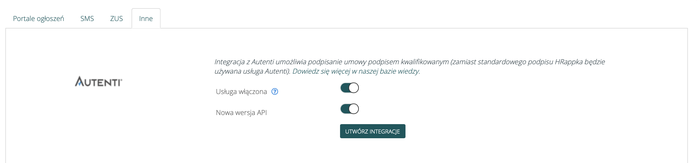 HRappka posiada integracje z Autenti w zakresie wysyłki dokumentów do podpisu elektronicznego (zarówno jednostronnego jak i dwustronnego). Aby skorzystać z integracji należy uzupełnić dane integracji.