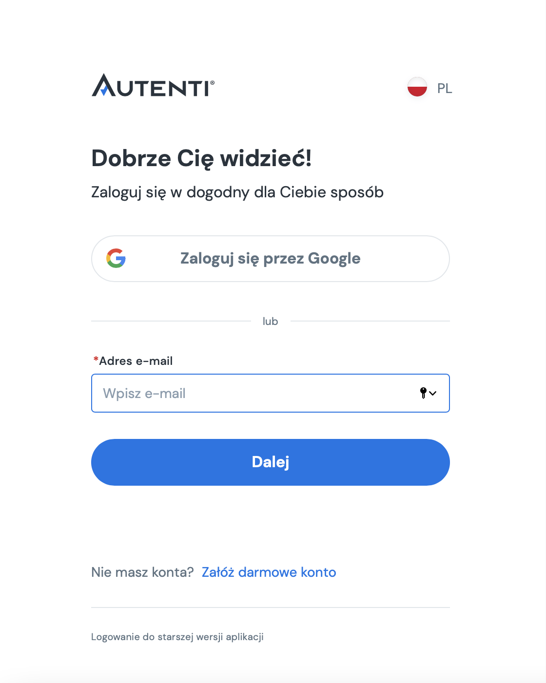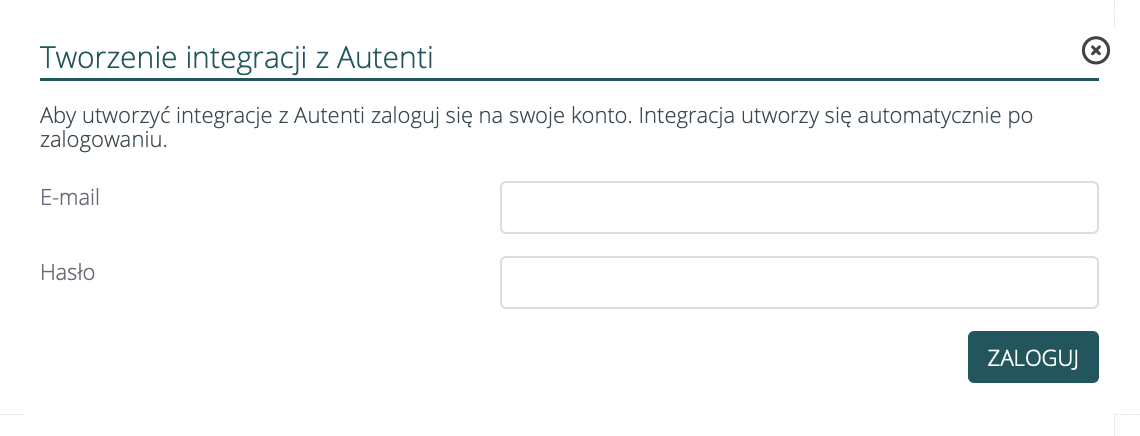 Następnie wpisać e-mail oraz hasło z serwisu Autenti (dane, którymi logujemy się do Autenti):