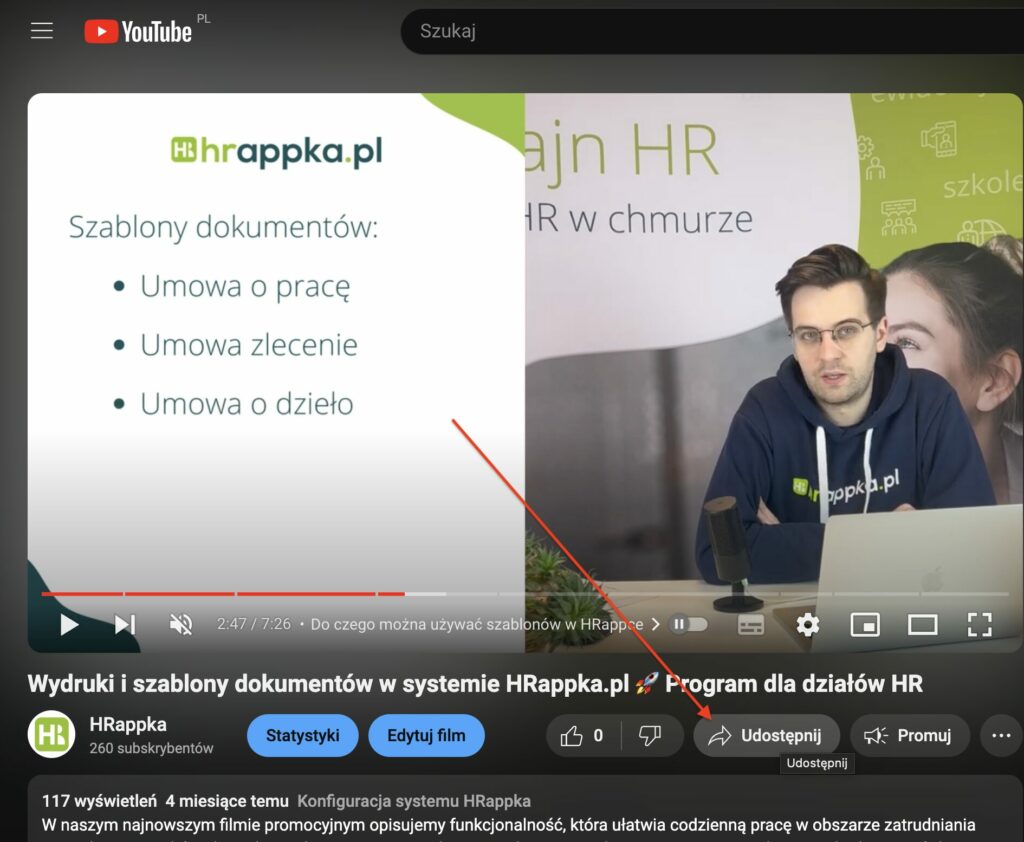 Po zapisaniu, w opisie pojawi się filmik: