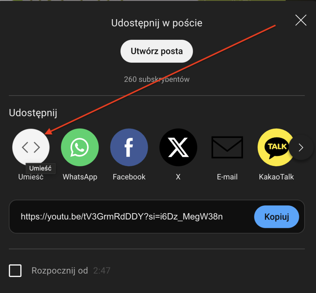 Dla przykładu, na Youtube należy kliknąć Udostępnij (pod filmem):