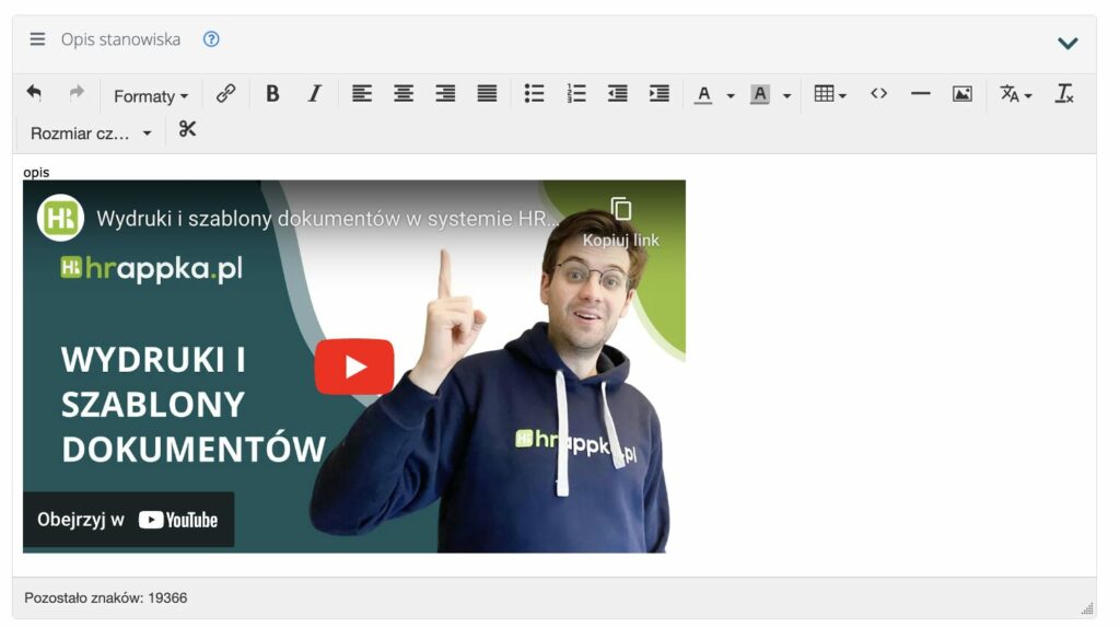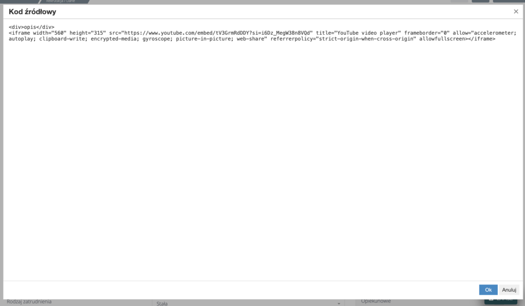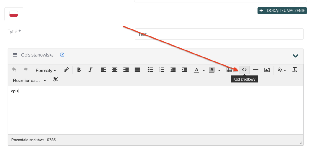W kolejnym kroku należy przejść do edytora w HRappce i włączyć tryb kod źródłowy: