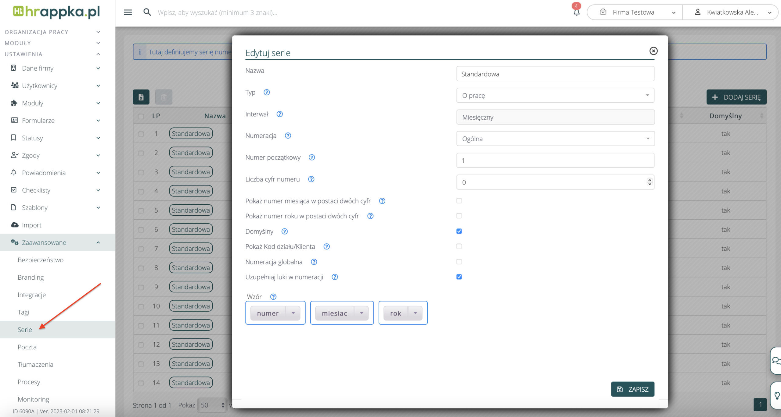Aby zmienić numerację faktur sprzedażowych należ przejść w: Ustawienia > Zaawansowane > Serie – wyszukać dodaną już serię i zmienić interwał, numerację i inne parametry zależnie od potrzeb.