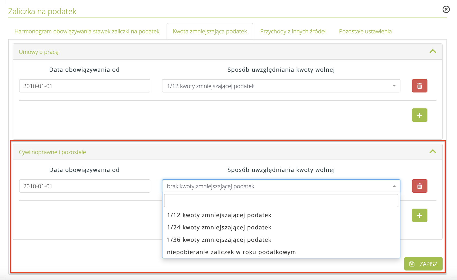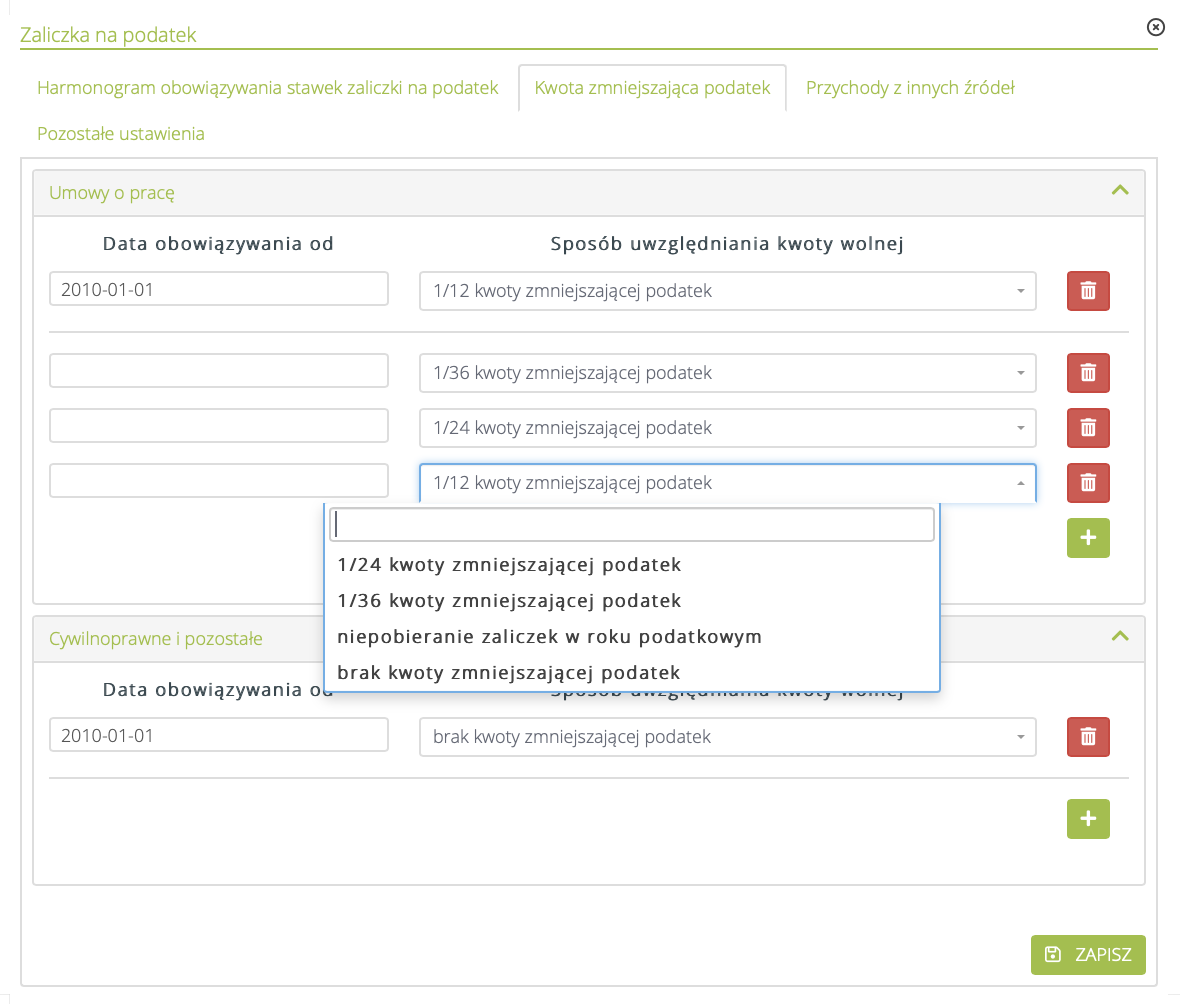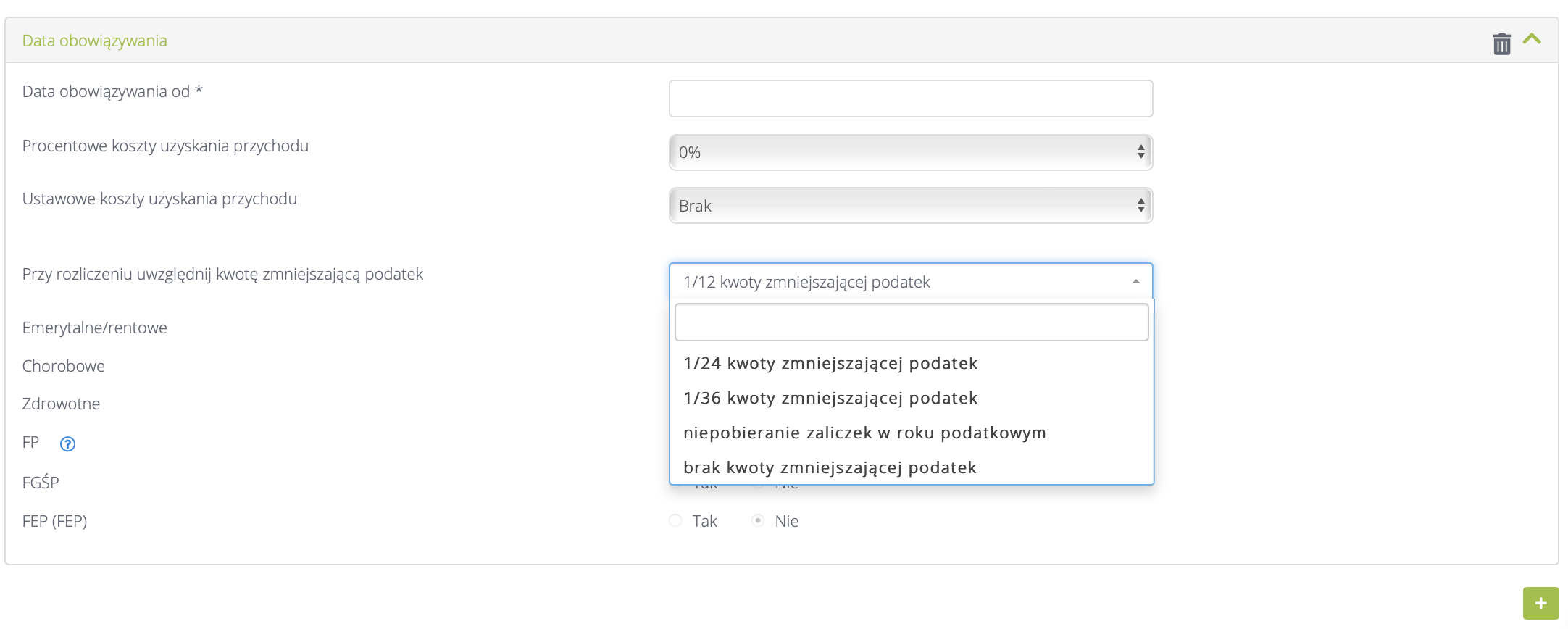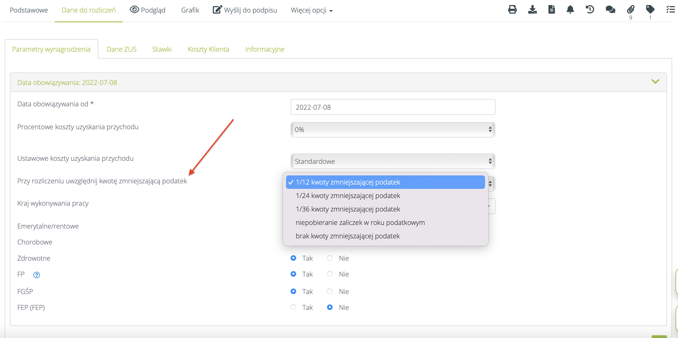 Dla obecnych Klientów przeniesione zostaną dotychczasowe ustawienia. To znaczy, jeżeli zaznaczona była “uwzględniaj kwotę wolną od podatku”, zaznaczona zostanie opcja “1/12 kwoty zmniejszającej podatek”.