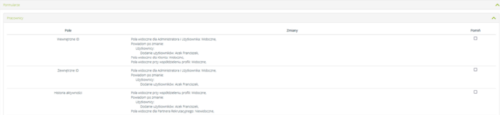 Po przejściu dalej, system pokazuje wybrane zmiany oraz daje możliwość pominięcia wybranych elementów: