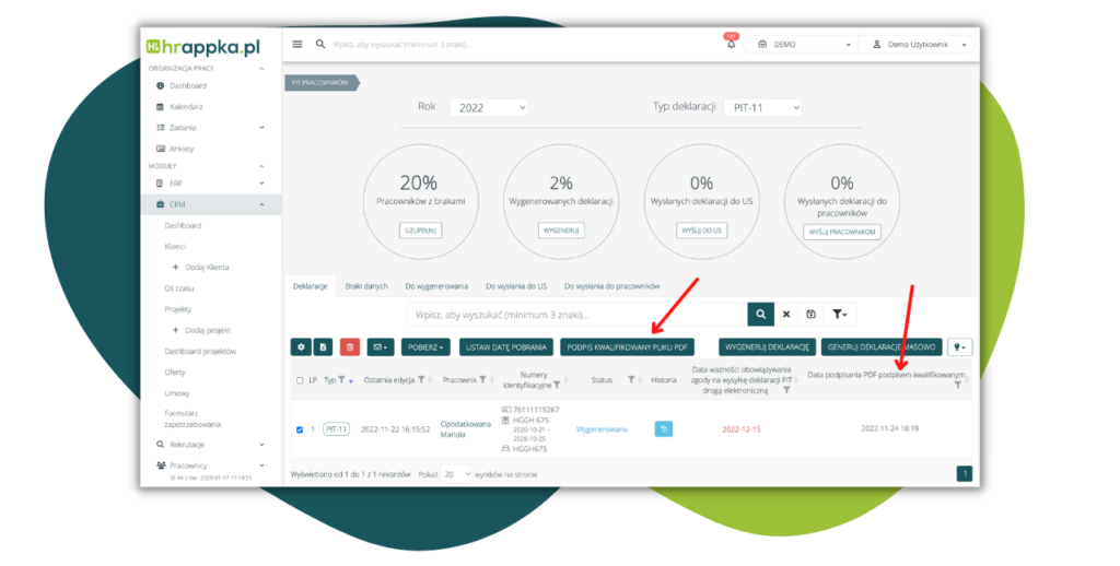 Podpis kwalifikowany deklaracji PIT-11 / IFT-1R wysyłanych do pracownika #