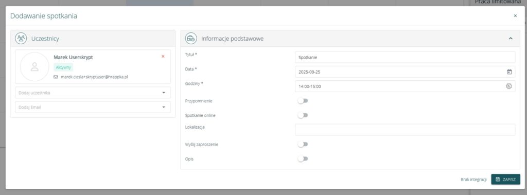 • Wyłączenie widgetu „Zespół” na portalu pracownika