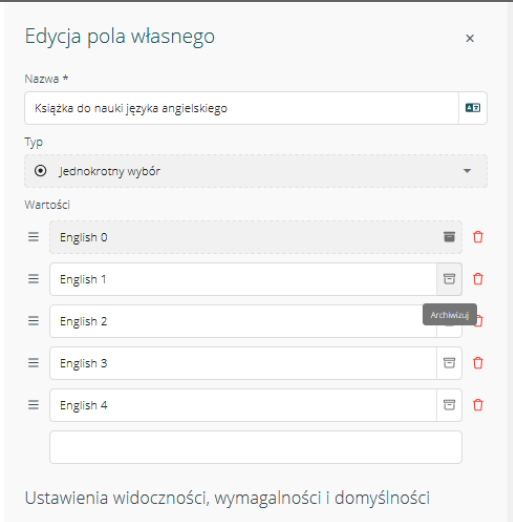 Opcja archiwizacji dotyczy pól własnych takich jak:
