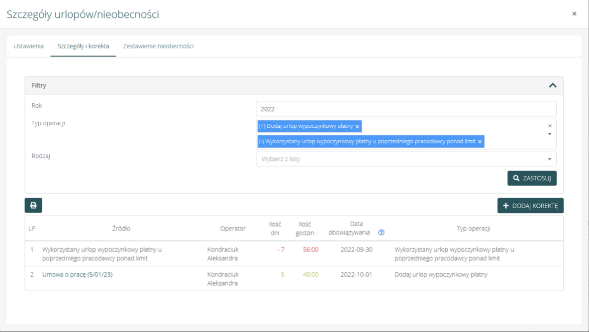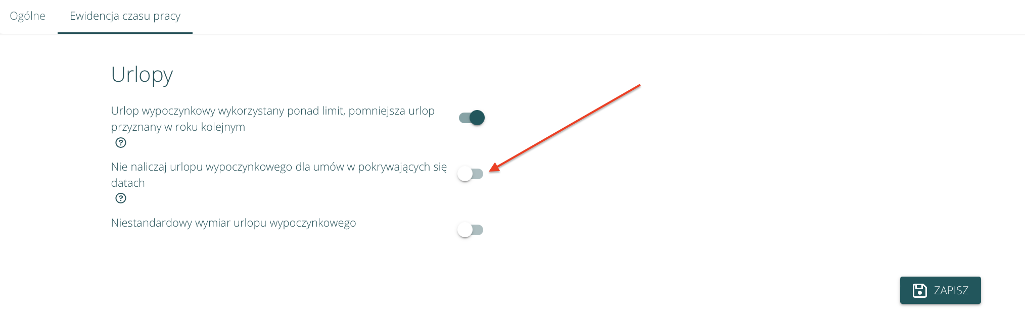 • Nowa opcja związana z wyliczaniem urlopu wypoczynkowego dla umów pokrywających się
