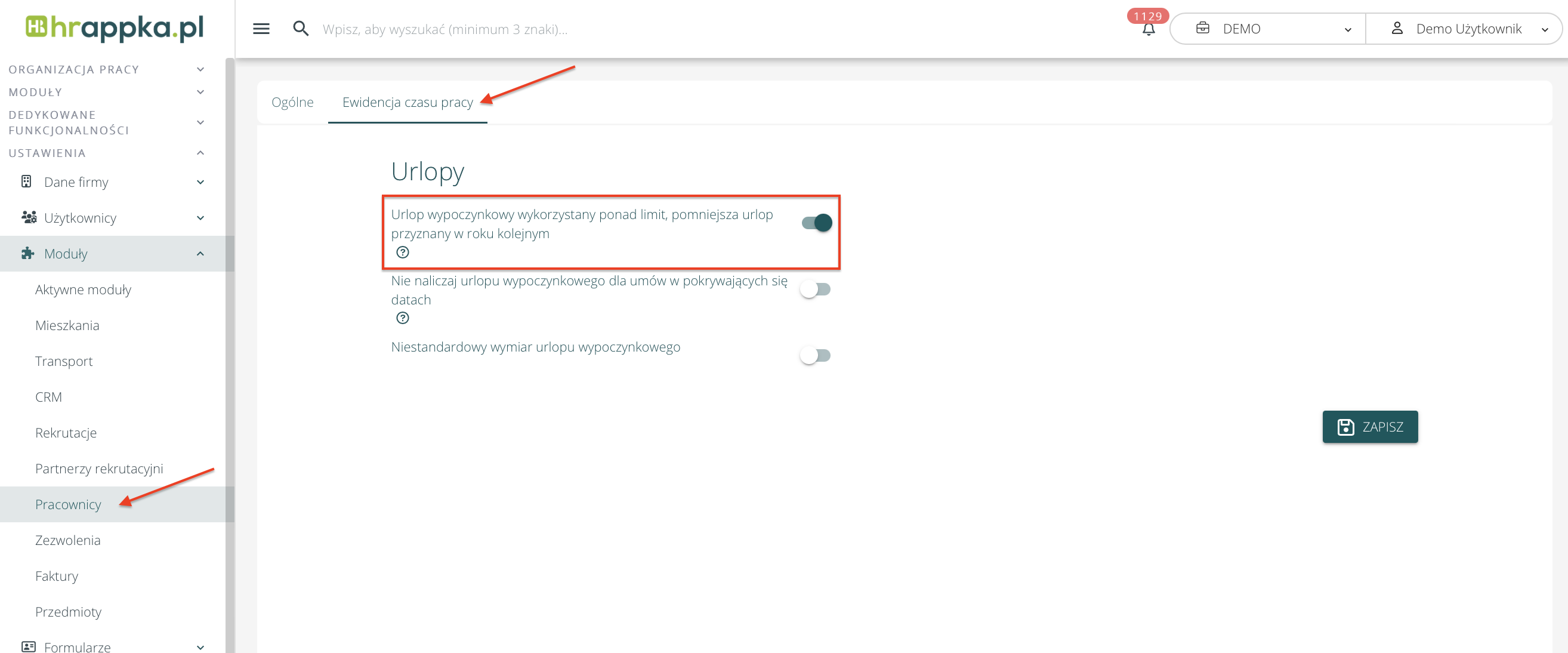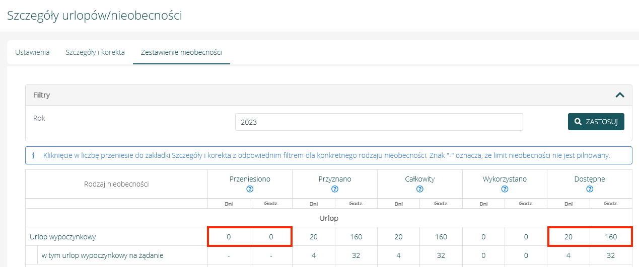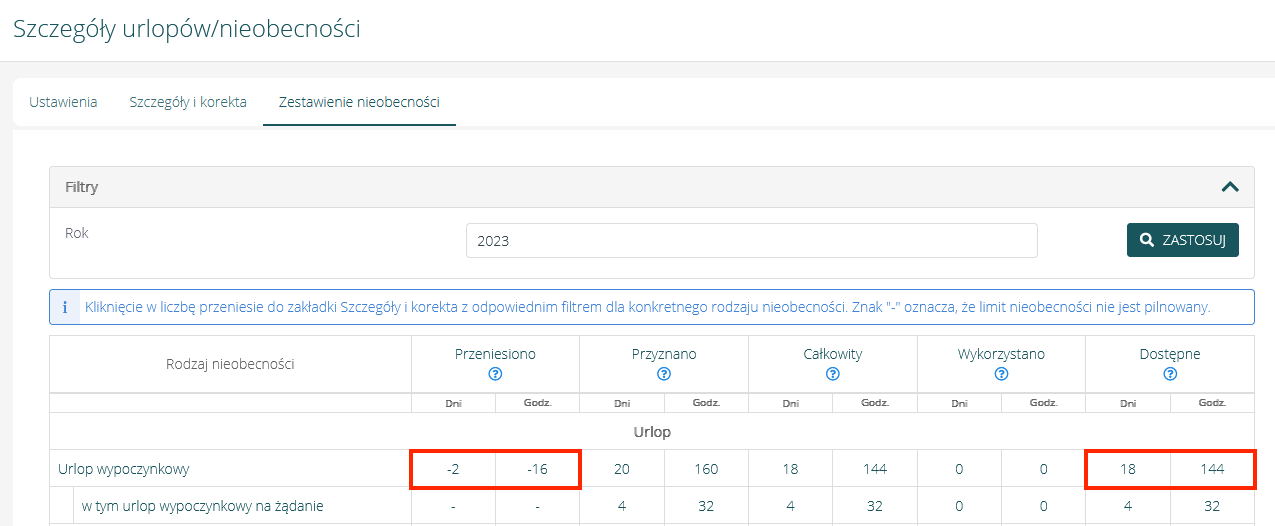 • Urlop wykorzystany w danym roku ponad limit – rozszerzenie możliwości przenoszenia urlopów na kolejny rok
