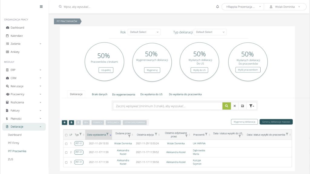 Drugi etap planowany jest w najbliższej przyszłości. Wdrożony zostanie nowy dashboard dla modułu PIT-y:
