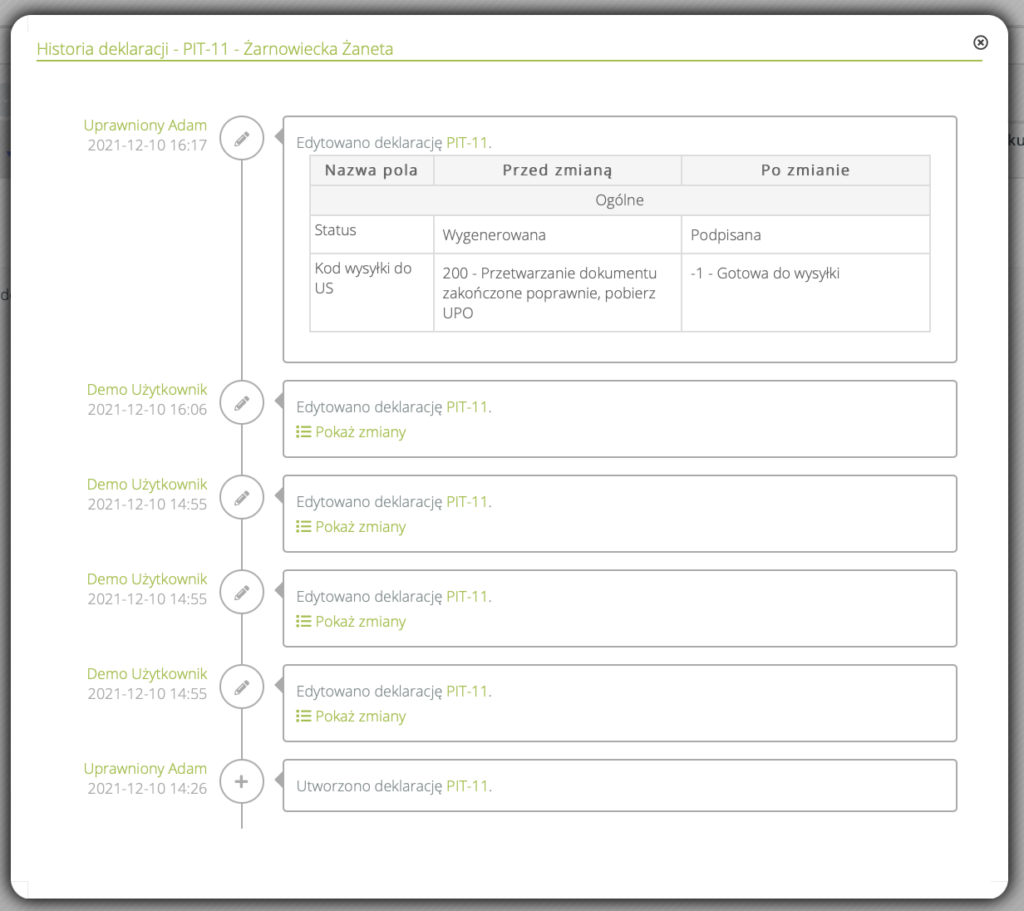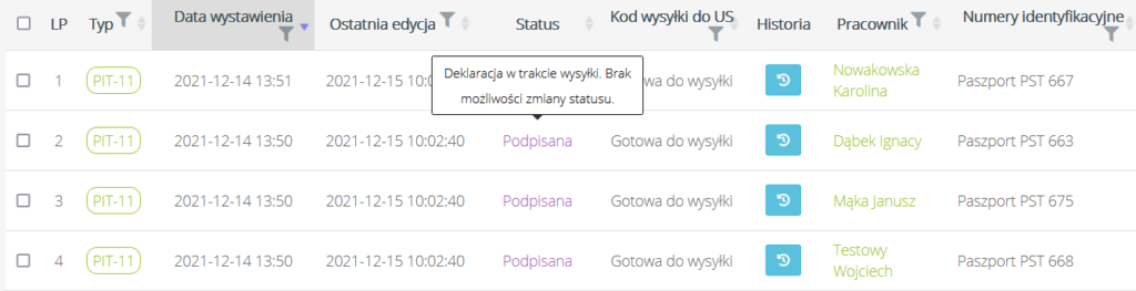 Funkcja działająca w tle będzie zmieniała odpowiednio statusy podpisanych deklaracji: