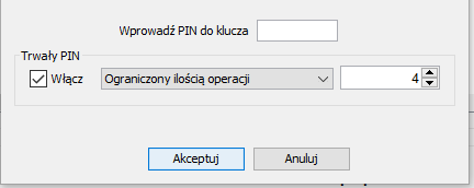 Pojawi się okno, w który, należy wpisać PIN i kliknąć przycisk „Akceptuj”:
