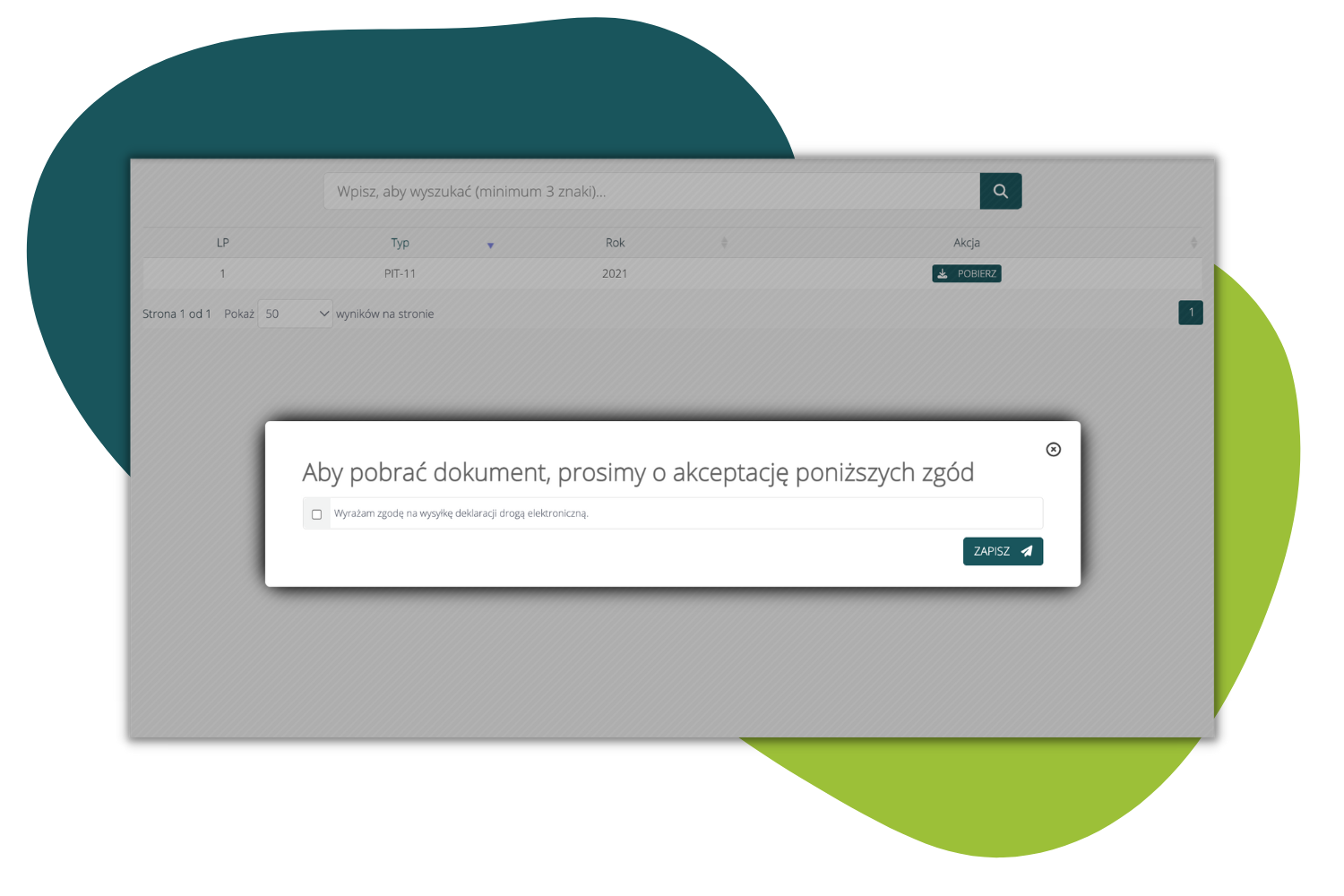 Aby pobrać otrzymane deklaracje, pracownik musi najpierw wyrazić zgodę na wysyłkę dokumentów drogą elektroniczną: