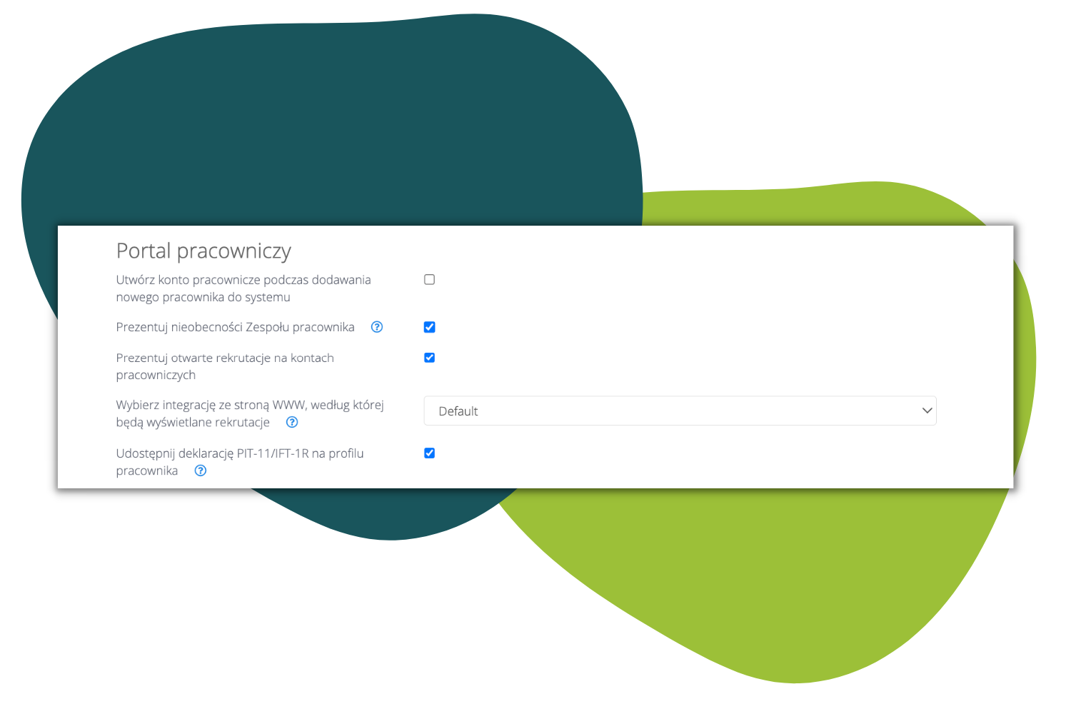 Konfiguracja funkcjonalności dostępna jest w Ustawienia firmy > Moduły > Pracownicy > Portal pracowniczy > Udostępnij deklarację PIT-11/IFT-1R na profilu pracownika.