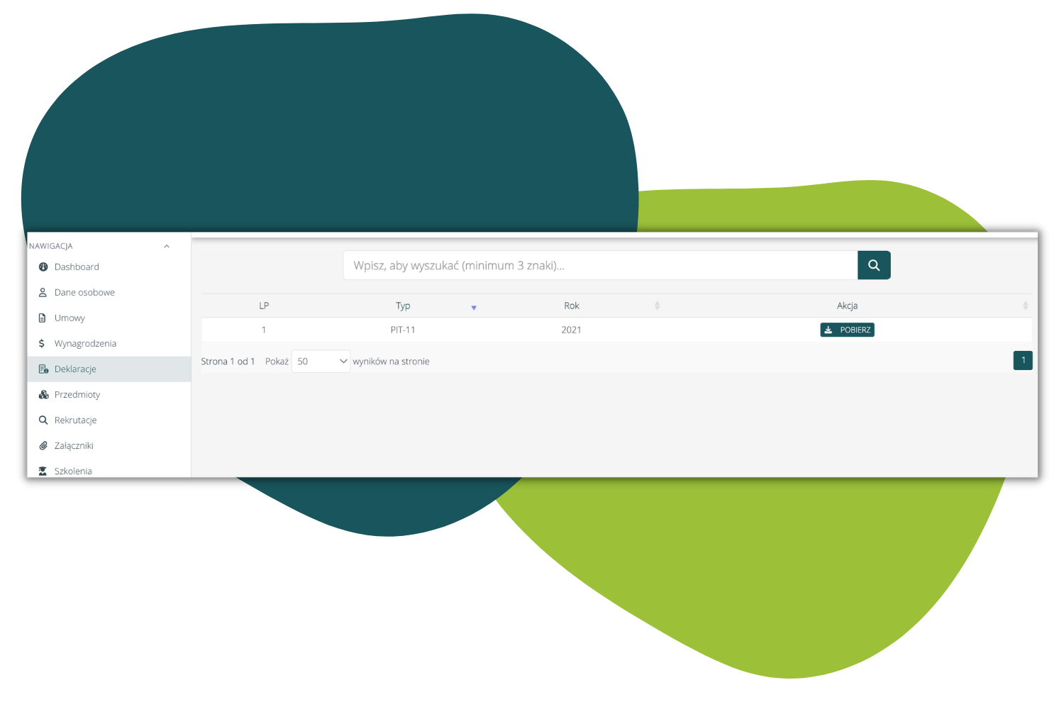 Na Portalu Pracownika dodana została zakładka Deklaracje. Wykazywane są tam deklaracje PIT-11 oraz IFT-1R, w przypadku gdy są w statusie Potwierdzona.