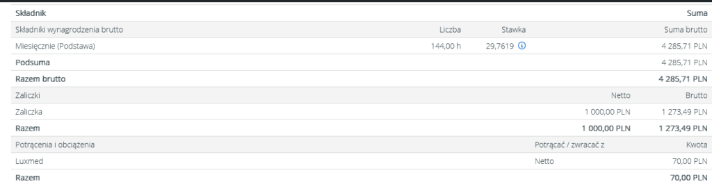 W celu zwiększenia przejrzystości rozliczeń wydzieliliśmy dodatkową sekcję „Zaliczki” w szczegółach wynagrodzenia.