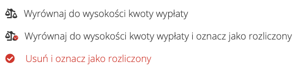 - “Wyrównaj do wysokości kwoty wypłaty i oznacz jako rozliczony”