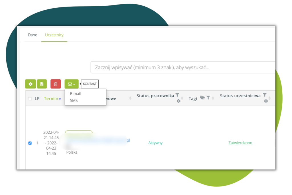 - Na danym szkoleniu – opcja kontaktu z wieloma uczestnikami szkolenia jednocześnie: