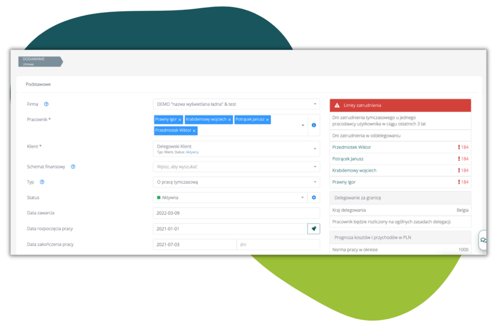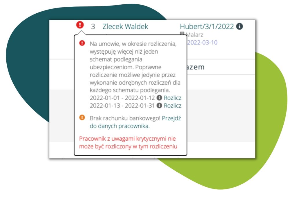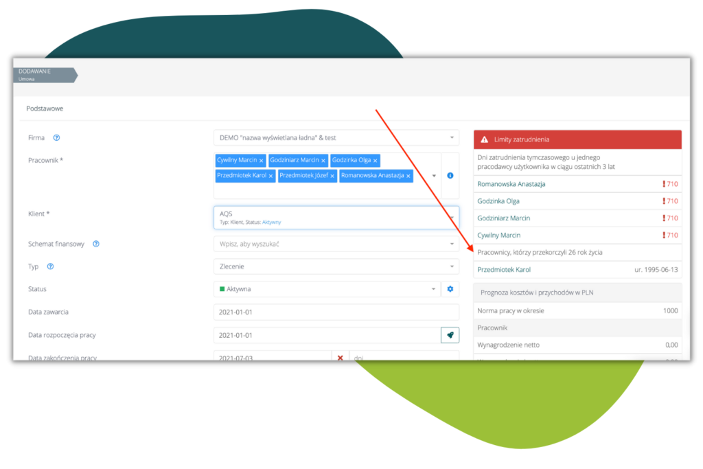 - Po przekroczeniu przez pracownika 26 lat, w przypadku masowego wystawiania/odnawiania umów zlecenie, pojawia się komunikat: