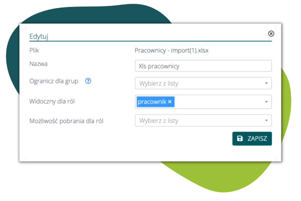 - Możliwość pobrania dla ról – możliwa jest tylko po wyborze widoczności dla roli