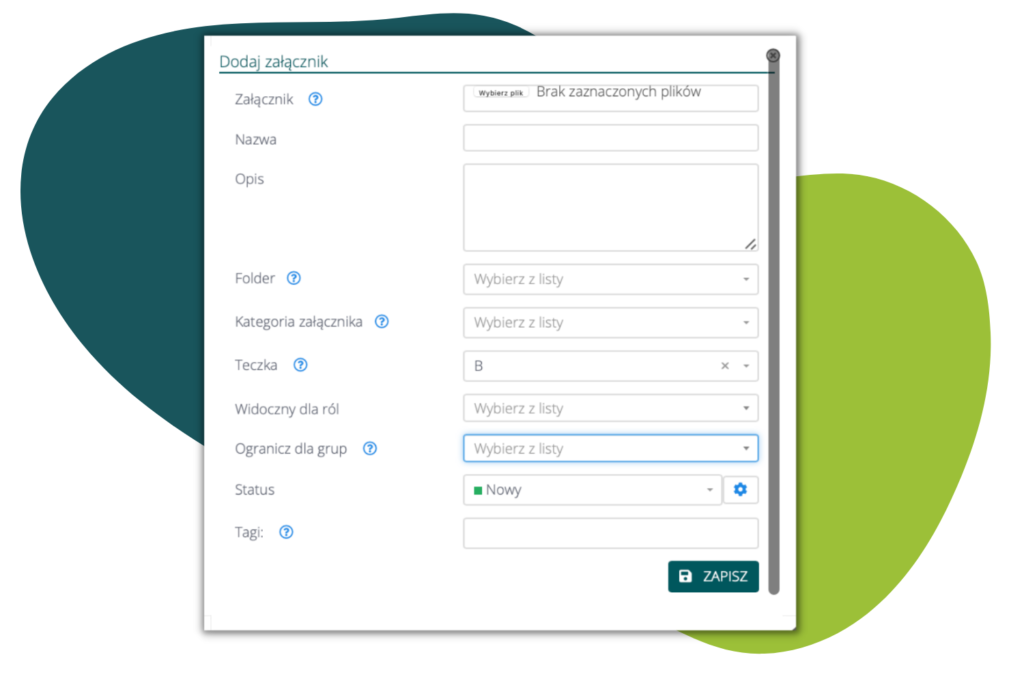 - podczas dodawania wydruku dowolnej treści, gdy zaznaczona zostanie opcja „zapisz” do załączników