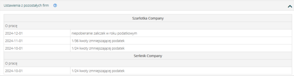 Co więcej, w przypadku wielofirmowości, w nowych zakładkach pokazywane są dane również z innych, powiązanych firm (jedynie podgląd bez edycji – edycja jest możliwa po przejściu na daną firmę):