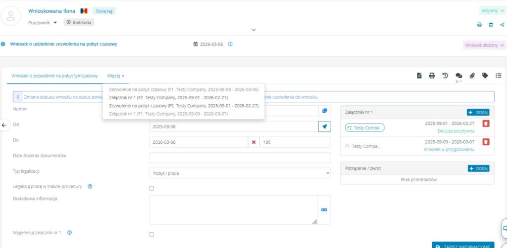Wniosek o pobyt czasowy – obsługa załączników wielofirmowo #