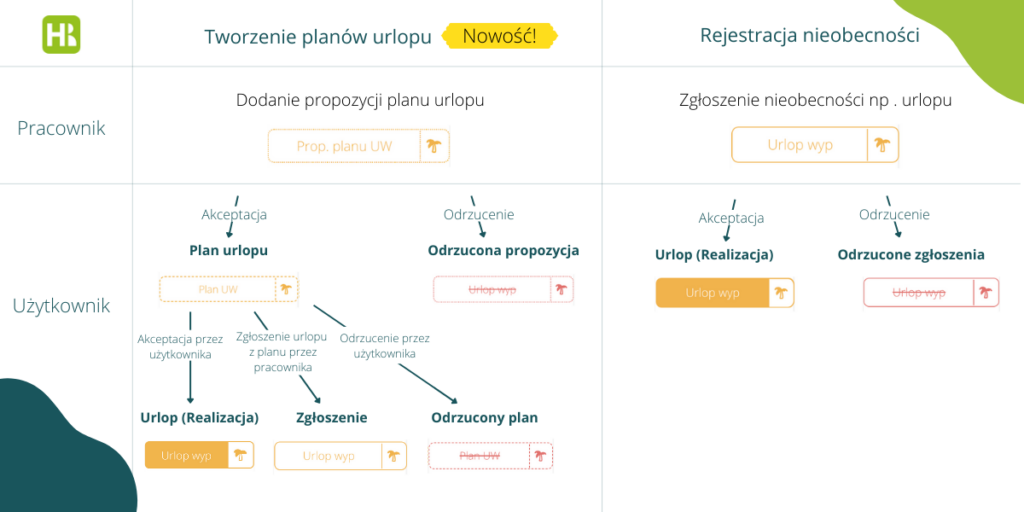 Schemat tworzenia planów urlopów w porównaniu ze standardowym wnioskowaniem o urlop: