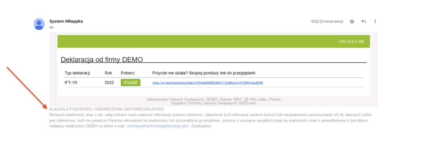 - Do wiadomości dot. wysyłki PIT do pracowników dodana została dodatkowa informacja w stopce dot. Klauzuli poufności i ograniczenia odpowiedzialności: