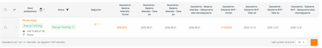 Do listy pracowników dodano kolumny umożliwiające szybki podgląd danych związanych z badaniami i szkoleniami:
