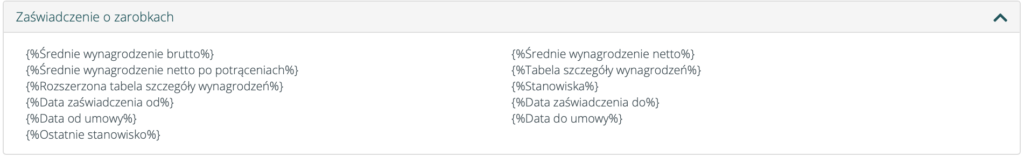 Dodanie nowych znaczników na Zaświadczeniu o zarobkach #