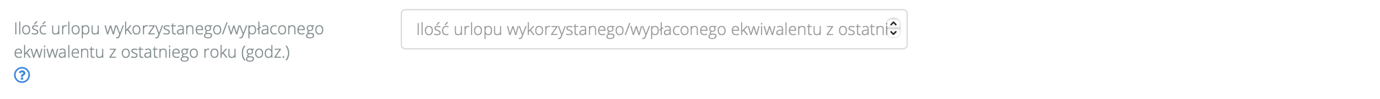 W danych pracownika (Pracownicy > Lista pracowników > Pracownik), po dodaniu niepełnosprawności (minimum stopień umiarkowany, niepełnosprawność udokumentowana miminum roczna i w trakcie trwania umowy) dodane zostaje nowe pole w doświadczeniu zawodowym “Ilość urlopu wykorzystanego/wypłaconego ekwiwalentu z ostatniego roku dla osób niepełnosprawnych (godz.)”: