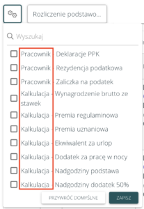 Co więcej, w ustawieniach widoku kolumn na rozliczeniu dodaliśmy przed nazwą kolumny informację czy dotyczy pracownika, czy kalkulacji: