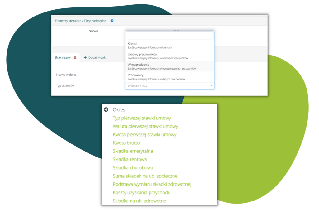 W Raporty > Raporty niestandardowe > Utwórz raport, dodany został nowy typ obiektów do wybrania „Wynagrodzenia”. W widocznych kolumnach dostępne są wszystkie kolumny dotyczące stawek i wynagrodzeń: