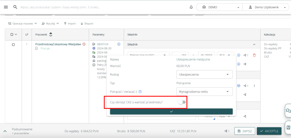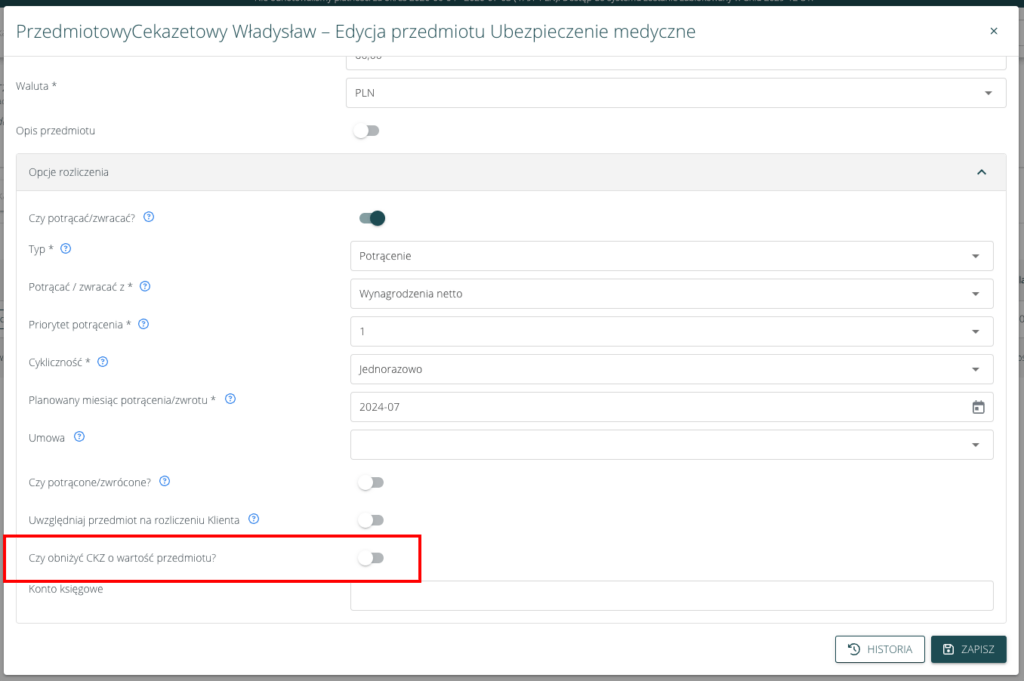 W takiej sytuacji system pozwoli zmienić od czerwca tylko elementy sprawdzane po dacie rozliczenia (Emerytalne/rentowe, Chorobowe, Zdrowotne, FP, FGŚP, FEP) a nie pozwoli zmienić wartości w polu “Procentowe koszty uzyskania przychodu” oraz “Przy rozliczeniu uwzględnij kwotę zmniejszającą podatek”. W przypadku błędu wyświetlony zostanie specjalny komunikat: