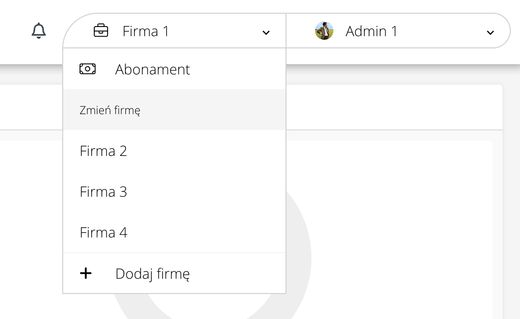 W odpowiedzi na prośby napływające od naszych Klientów zdecydowaliśmy przywrócić wybór wszystkich firm (również tych z innych subskrypcji) z poziomu górnego menu dla Użytkowników i Administratorów.