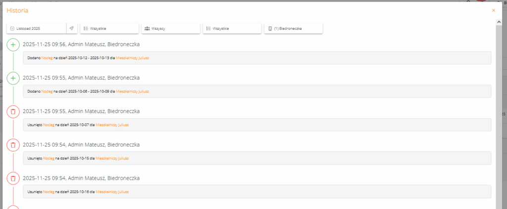 Historia została znacząco rozbudowana i pozwala teraz na filtrowanie zdarzeń po firmach oraz typach operacji.