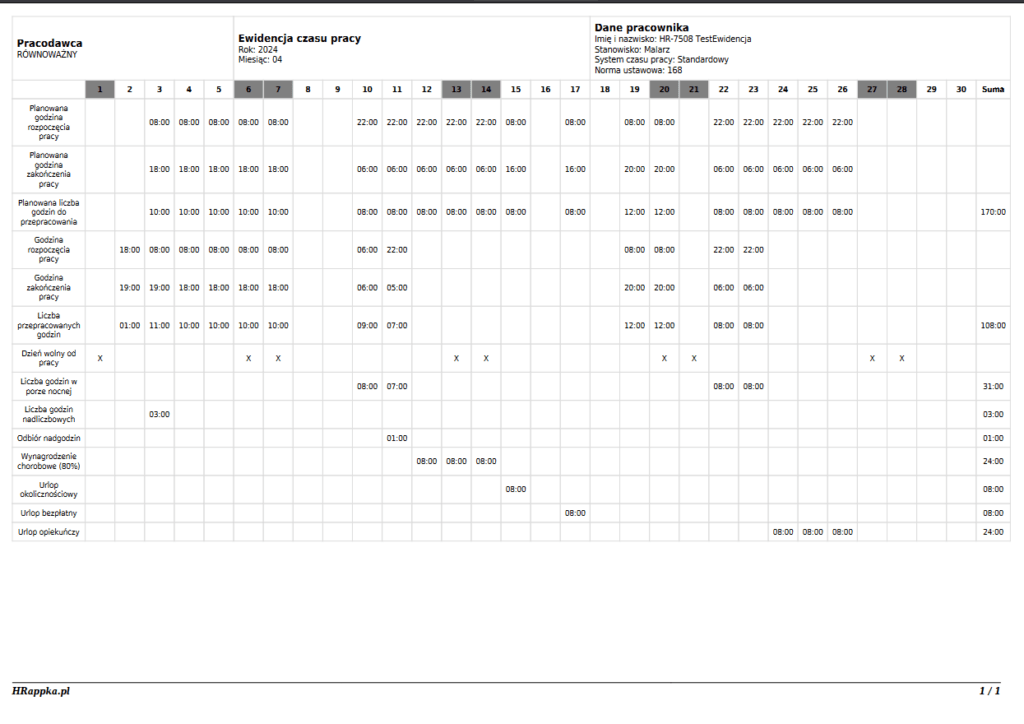 • Liczbę godzin przepracowanych w porze nocnej