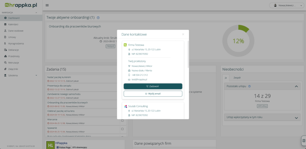 Dodatkowo w ramach tego zadania umożliwiliśmy wskazanie czy podany adres email lub numer telefonu pracownika jest służbowy czy prywatny. Pozwoli to uniknąć sytuacji, w której pracownikowi zostanie wyświetlony prywatny numer przełożonego.