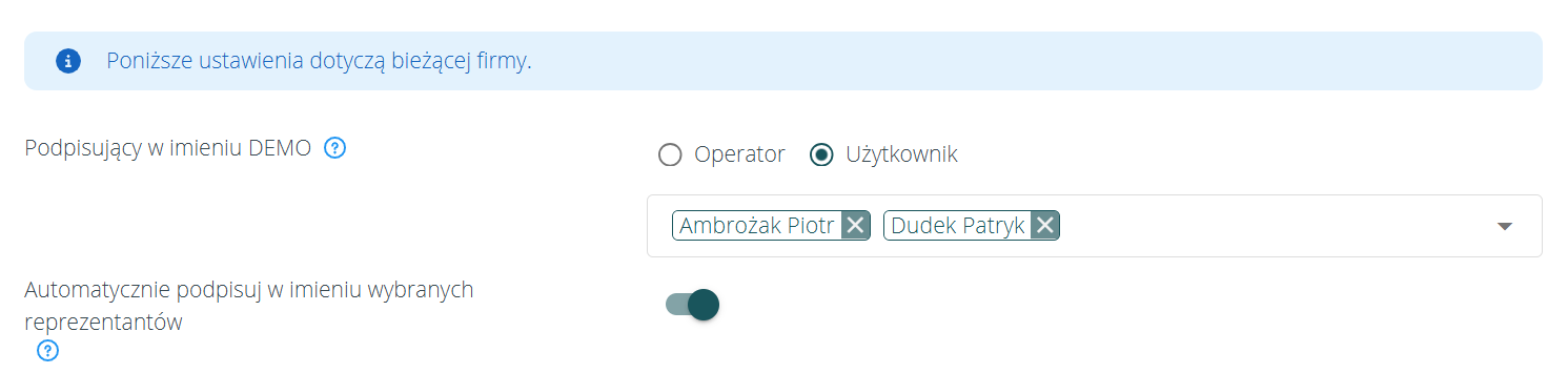 Automatycznie podpisuj w imieniu wybranych reprezentantów #