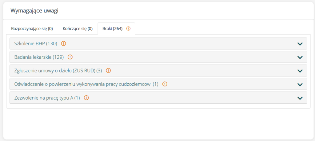 Widget prezentuje niezmienioną formę danych dotyczących zezwoleń, umów oraz deklaracji prezentowaną w poprzedniej wersji dashboardu pod nazwą “Zezwolenia / Deklaracje”. Forma prezentowanych na tym widgecie danych, sposób ich wyliczania oraz zależność widgetu od włączonych modułów i uprawnień użytkowników pozostaje bez zmian. Widget ten zostanie przebudowany w kolejnej fazie rozwoju systemu, o której będziemy informować w newsletterze.