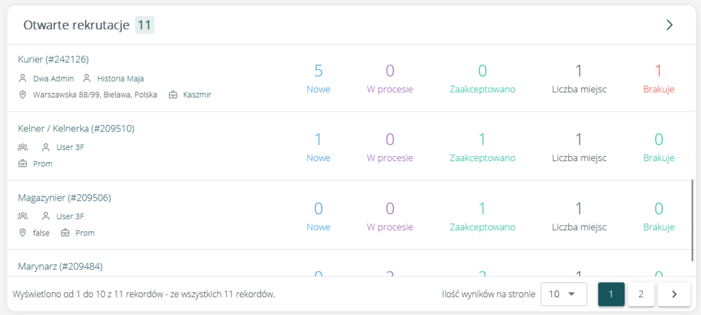 - nie masz dostępu do danych spełniających warunki widgetu lub takie dane nie istnieją np. brak otwartych rekrutacji w firmie lub rekrutacje, do których masz dostęp mają inny status niż otwarta