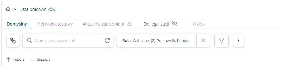 - Aktualnie zatrudnieni – widok własny zalogowanego użytkownika, który oznaczył jako taki, który inni mogą współdzielić