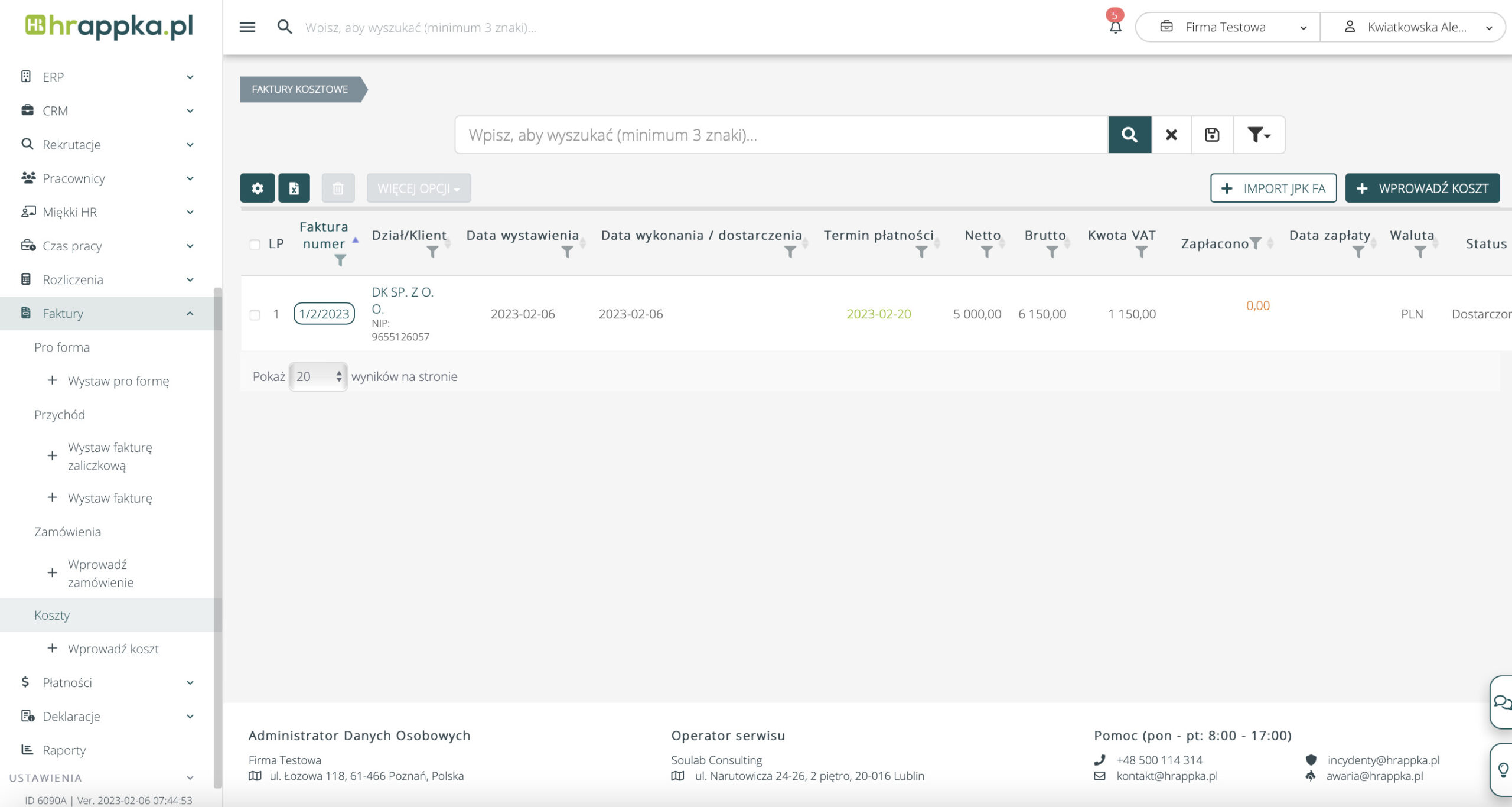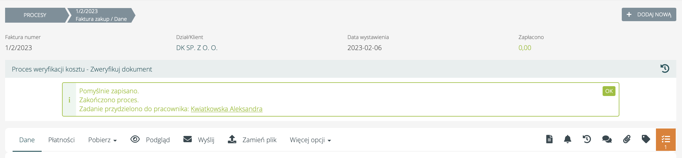 Po zakończeniu procesu faktura znajdzie się w Faktury > Koszty.